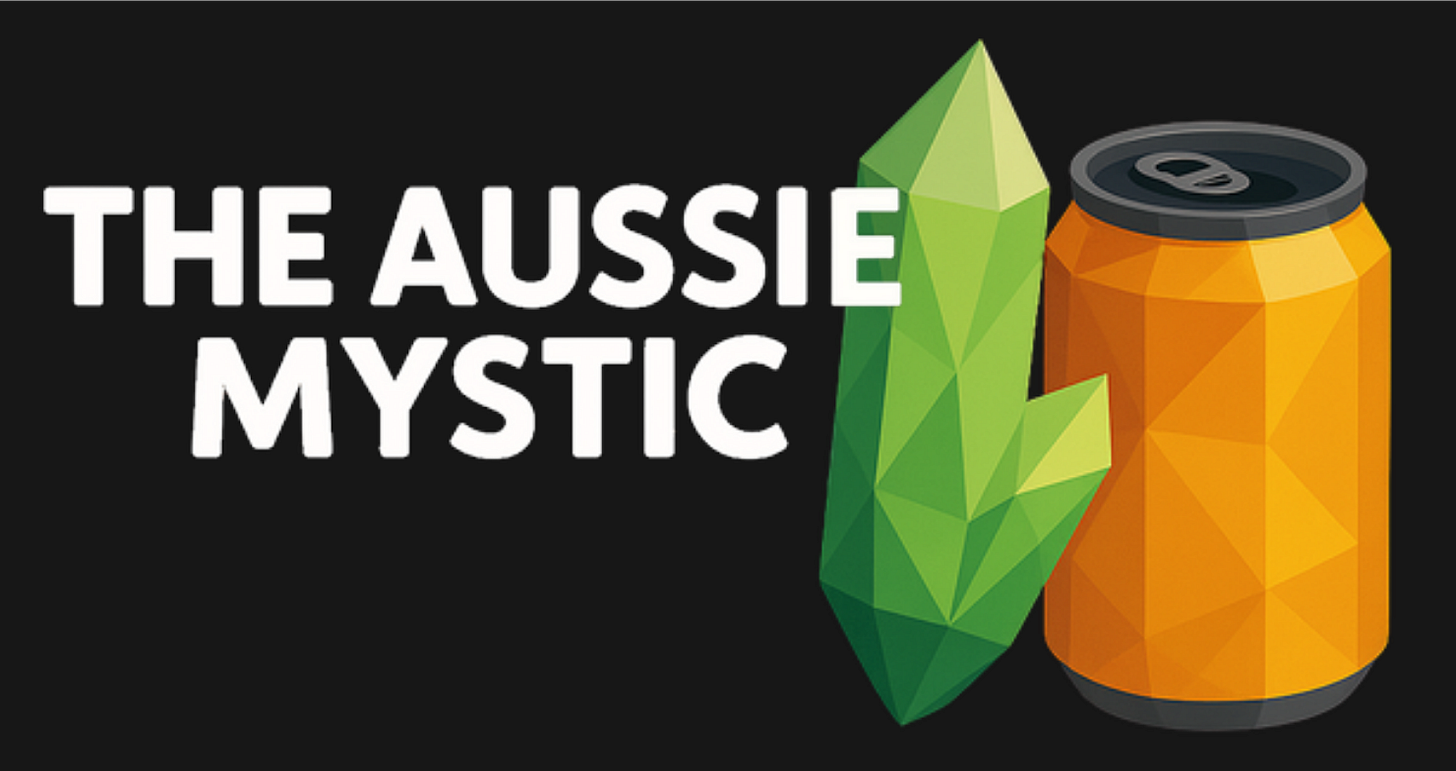 A spiritual Substack with a beer in one hand and a crystal in the other.